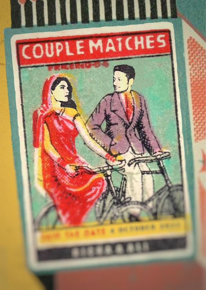 The Save the date invitation is all about Indian Nostalgia with a playful visual renderation of Indian vintage graphic art