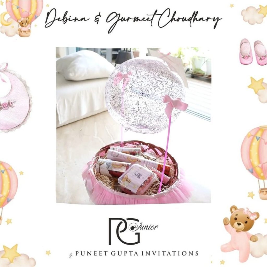 After a lot of brainstorming with Power Couple Gurmeet Choudhary & Debina Bannerjee on how to mark the arrival of baby girl Lianna to the world, we came up with the idea of sending a Hot air balloon to all the near and dear ones symbolic of how the angelic baby daughter has arrived down in their lap from the sky. All shades of candy pinks were used in a handmade tutu dress basket with a rose gold pink glitter balloon and a personalized note on the balloon announcing the arrival of Lianna.