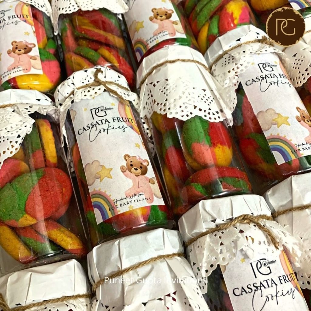 Apart from this some lovely jute tutu dress bags were also custom made for Lianna sent out as a token of love from her filled with box of handmade goodness from PG Gourmet having twinkle twinkle cookies to Casatta biscuits to other unique personalised edible gifts. The vibe is very organic and rustic chic using just as the base material.