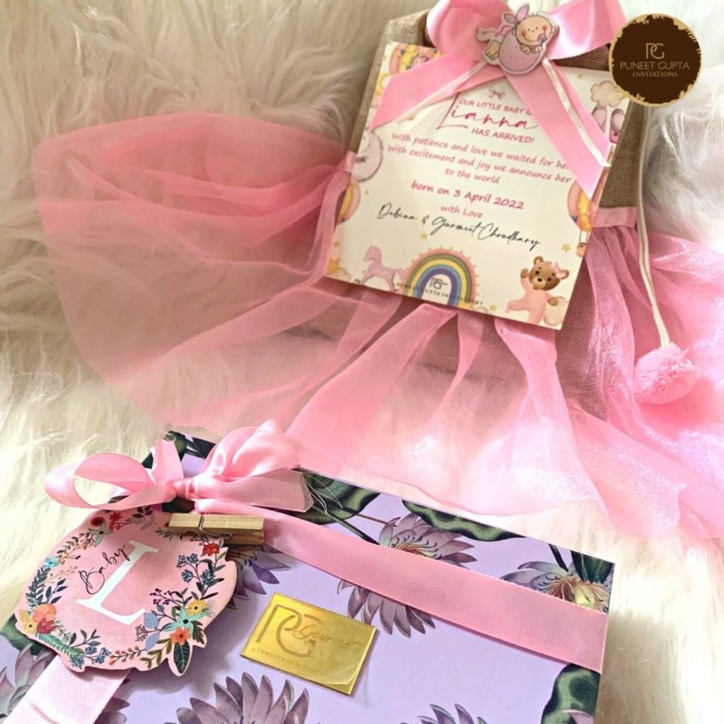 “Baby Girls are like little bundles of hope, like the future in a basket, a little angel from heaven indeed. This is what resonated with us when we thought of baby Lianna’s name announcement hamper.” – Puneet Gupta, Founder, Puneet Gupta Invitations