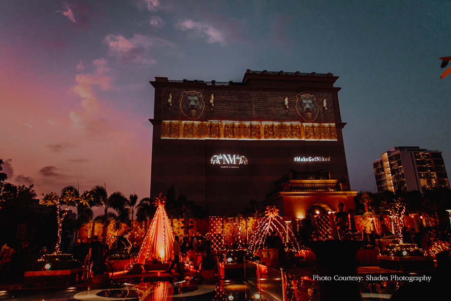 Adding a contemporary touch to the welcome dinner, Nikhita and Mukund wanted their event to be close to their heart and something that will stay etched in their guests mind, even long after the event is over. A large size wedding menu, wedding logo glass stickers and dreamy hallway lit with more than 3000 set the right mood for the welcome dinner. With an 8-ft Buddha statue, wedding logo projected on hotel building, exotic dancers, the welcome dinner was nothing short of perfection.
