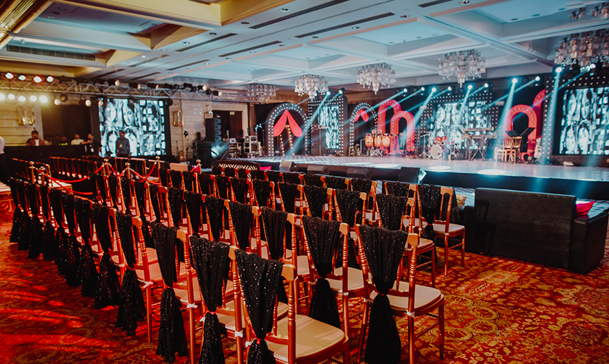 With golden entry ticket to red carpet, Bollywood ruled the sangeet night. Paparazzi and Bollywood actors lookalikes of Anil Kapoor, Salman Khan, Amitabh Bacchan, Hema Malini added to the whole showbiz of the celebrations. To get the entry to the sangeet night, a seal with couple’s logo was designed by us. Only once the golden ticket was stamped with the seal, the wedding guests could enter the venue and enjoy the paparazzi and the Bollywood madness. With Shankar Mahadevan and Terrance Lewis performance, the sangeet night felt complete.