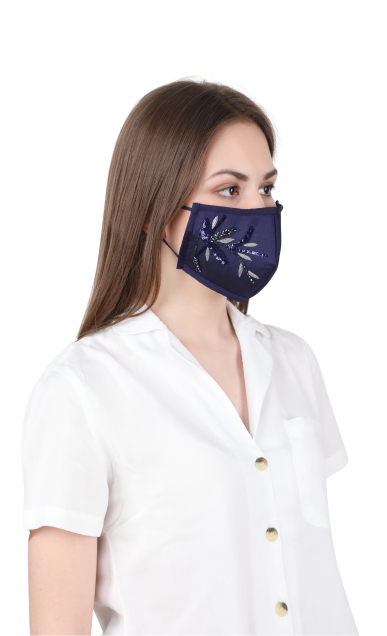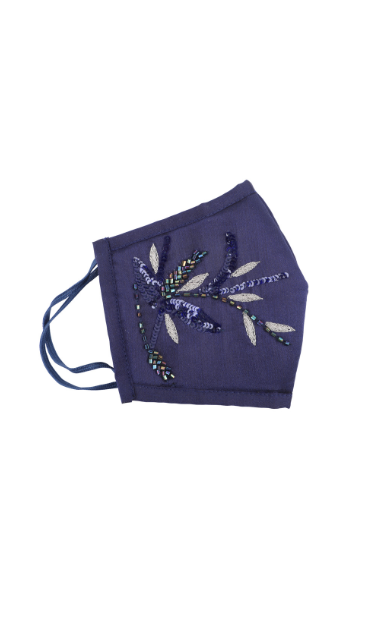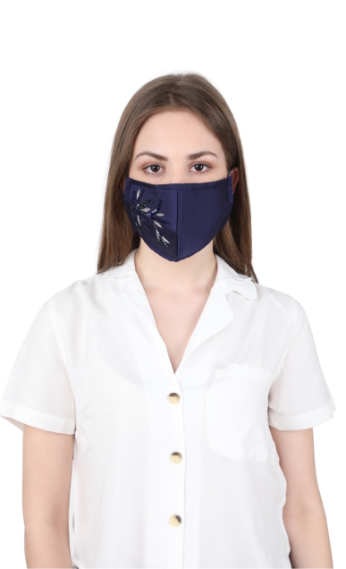 Blue Botanical Embroidered Face Mask for Women