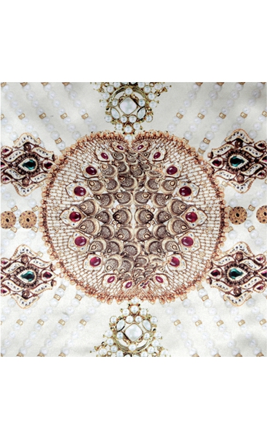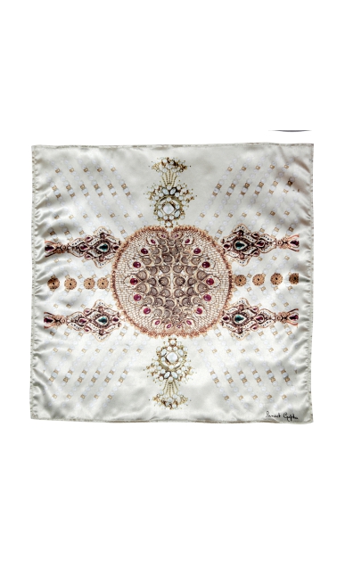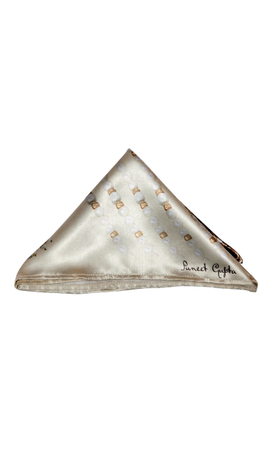 Classic cream and jewel print, this magnificent amalgamation is all you need for your next evening date. The Cream Rajwada pocket square is from the regal Chronicles collection by designer Puneet Gupta.