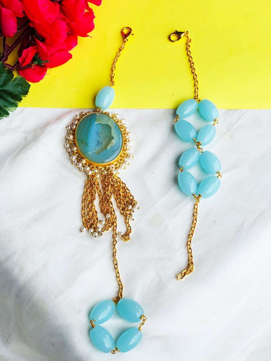 Blue Agate Rakhi and Lumba Set