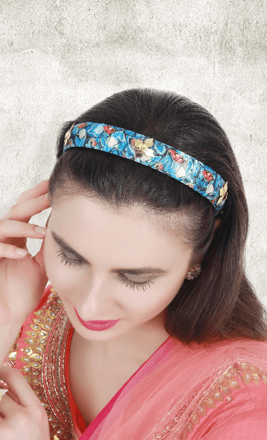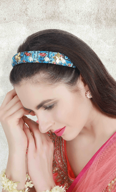 The Flora Sapphire Hairband is from the ‘Regal Chronicles’ Collection by designer Puneet Gupta. The hairband is our love for Royal vintage Jewellery and iconography. The print is inspired by the rare princely jewellery of erstwhile royal families of India. With pearl and neo-vintage embellishments, this jewel hairband will add a royal touch to your festive and occasional dressing.