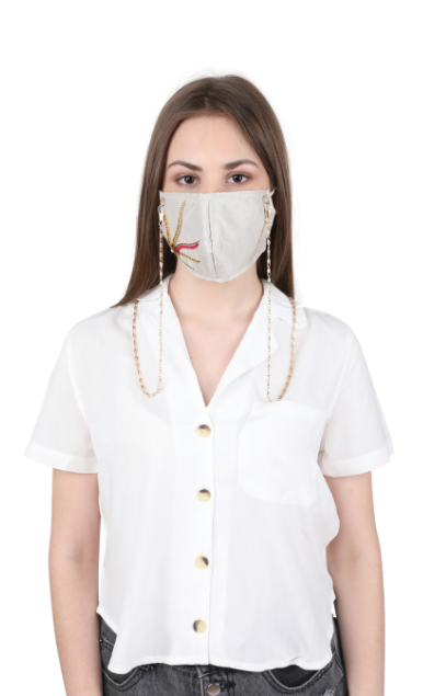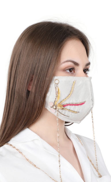 Hand embroidered with love by master Karigars to add style to your party or everyday look. The design is a white on white self embroidered floral motif. This stylish reusable mask is constructed with 3 layers of germ-resistant filters that provide protection from over 90% germs and microbes. The outer layer is made in dupion silk for a rich and lustrous look.