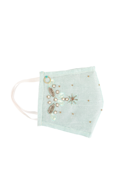 Hand embroidered with love by master Karigars to add style to your party or everyday look. The design is inspired by botanical floral branches from vintage indian royal tapestries. This stylish reusable mask is constructed with 3 layers of germ-resistant filters that provide protection from over 90% germs and microbes. The outer layer is made in dupion silk for a rich and lustrous look.