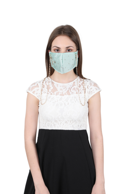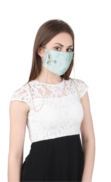 The mask comes with a unique neck chain feature for hasle free handling of the mask and keeping your mask safe from any contact with any unhygenic surface and saves you from the hastle of folding it and keeping it in your purse evertime you remove it or keep your hand occupied as you party.