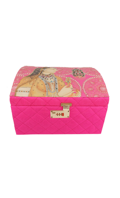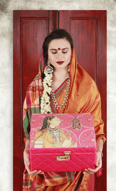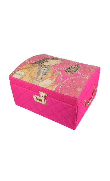 Enter your New home with panache and style like a modern maharani with our limited edition bridal pitaris, trunks and boxes. Each trunk in the collection is beautifully hand crafted in eclectic prints. They come with golden number locks to keep your stuff safe inside.