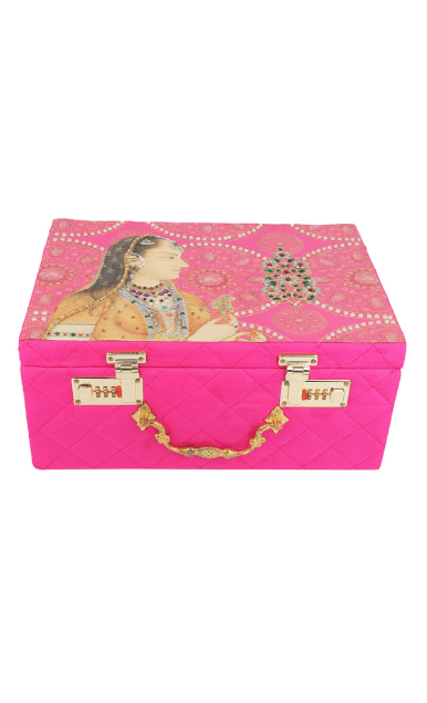 Enter your New home with panache and style like a modern maharani with our limited edition bridal pitaris, trunks and boxes. Each trunk in the collection is beautifully hand crafted in eclectic prints. They come with golden number locks to keep your stuff safe inside.