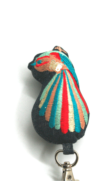 Hue Ericso Key holder can be attached to any bags, clutches and pouches. Also, it can be used as an identifier when connected with your regular name tags or as a fashionable hanging. Soft denim fabric adds modernity to the nature-inspired embroidery design. It’s handy, chic and stylish.