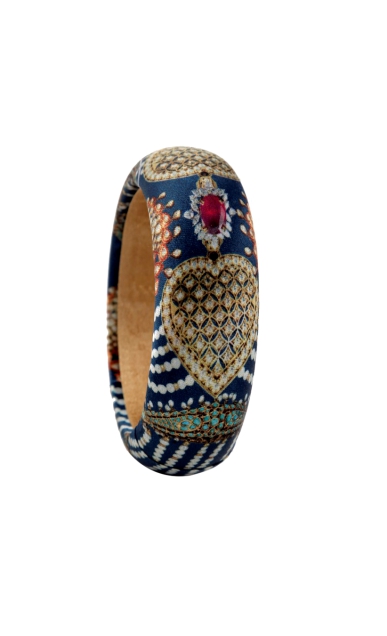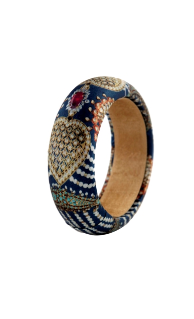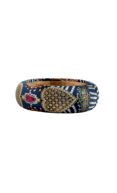 The MAHARANI JADAU KANGAN is from the JAYPORE COLLECTION by designer Puneet Gupta. The bangle is our love for Royal vinatge Jewelry and iconography. The print is inspired by the rare princely jewelry of erstwile royal families of india. This jewel bangle will add a royal touch to your festive and occasional dressing.
