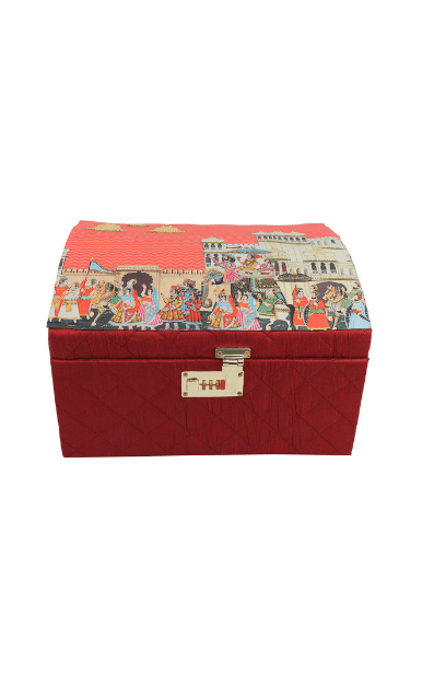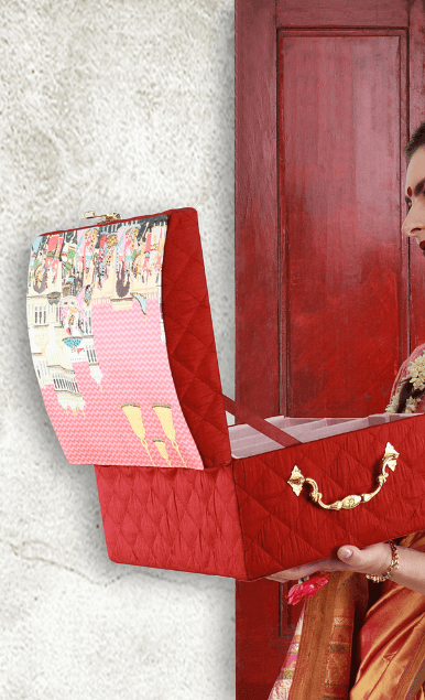 Enter your New home with panache and style like a modern maharani with our limited edition bridal pitaris, trunks and boxes. Each trunk in the collection is beautifully hand crafted in eclectic prints. They come with golden number locks to keep your stuff safe inside.
