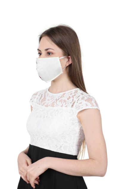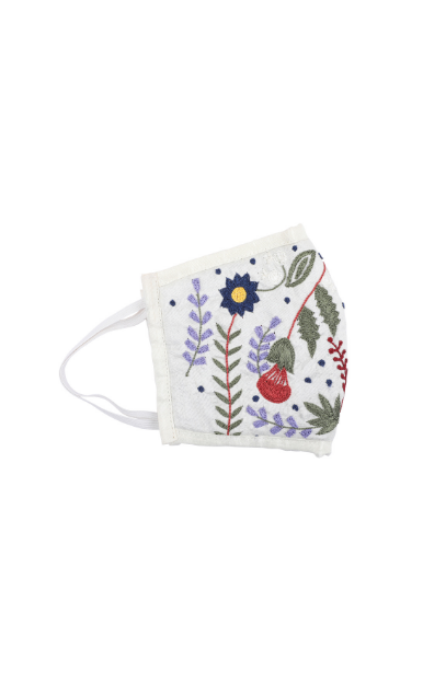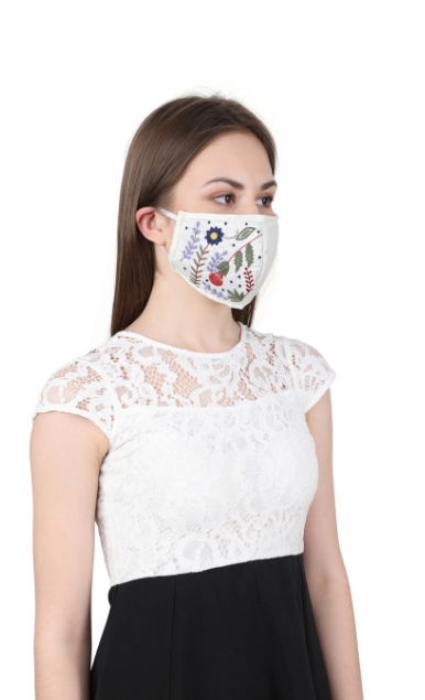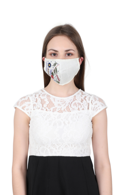 Hand embroidered with love by master Karigars to add style to your party or everyday look. The design is a white on white self embroidered floral motif. This stylish reusable mask is constructed with 3 layers of germ-resistant filters that provide protection from over 90% germs and microbes. The outer layer is made in dupion silk for a rich and lustrous look.