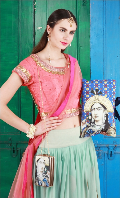 The Mughal-e-Azam Coordinated Set is from the REGAL CHRONICLES COLLECTION by designer Puneet Gupta. The set is inspired by royal living and vintage iconography and echoes bold statement look. A clutch and a lingerie bag form this set.