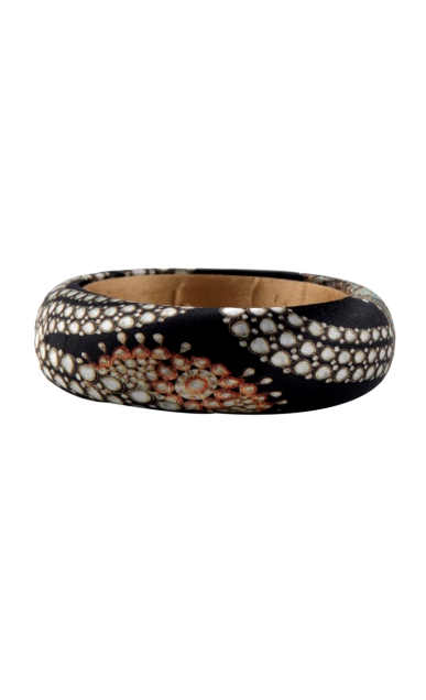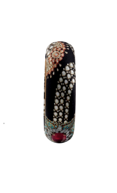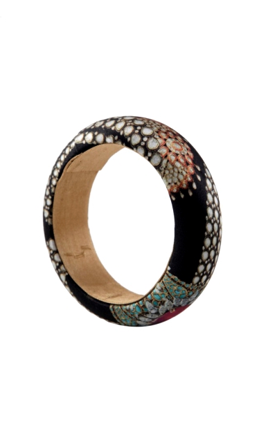 The POLKI BANGLE is from the JAYPORE COLLECTION by designer Puneet Gupta. The bangle is our love for Royal vinatge Jewelry and iconography. The print is inspired by the rare princely jewelry of erstwile royal families of india. This jewel bangle will add a royal touch to your festive and occasional dressing.