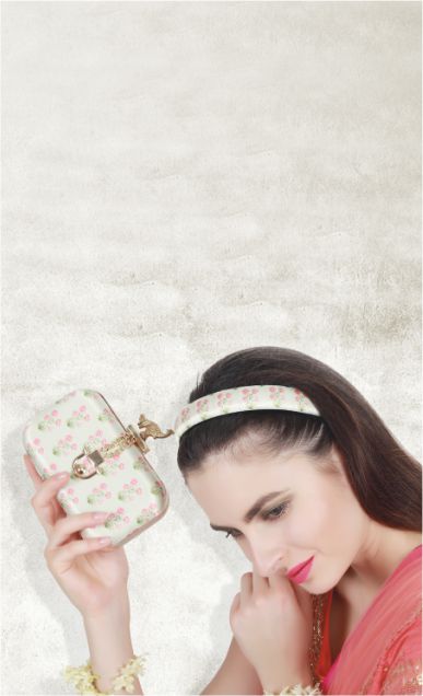 The Pushpa Coordinated Set is from the REGAL CHRONICLES COLLECTION by designer Puneet Gupta. The set is inspired by royal living and vintage iconography and echoes bold statement look. A clutch and a hairband form this set.