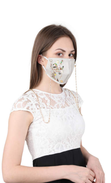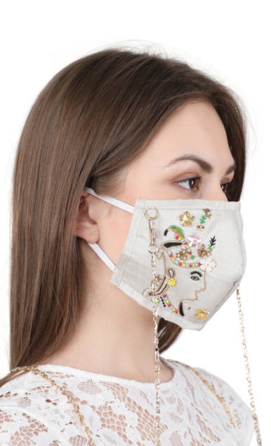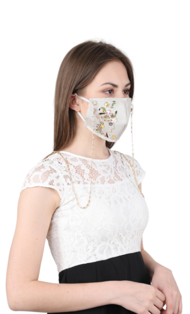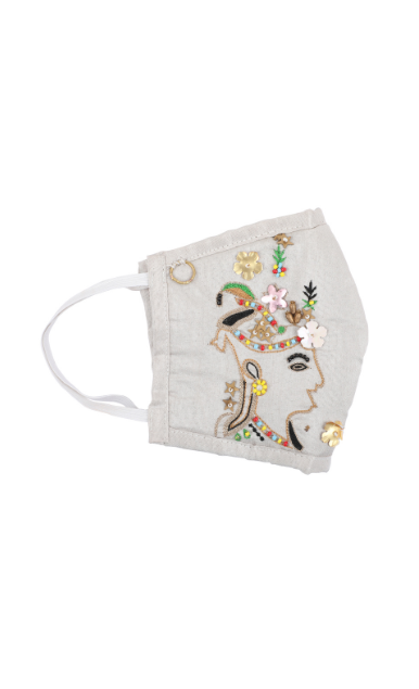 Hand embroidered with love by master Karigars to add style to your party or everyday look. The design is a white on white self embroidered floral motif. This stylish reusable mask is constructed with 3 layers of germ-resistant filters that provide protection from over 90% germs and microbes. The outer layer is made in dupion silk for a rich and lustrous look.