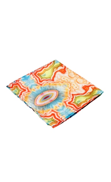 Boosting of pure silk fabrication, this trippy art pocket square completes your look with a touch of wildness.