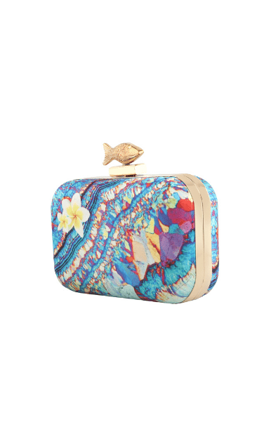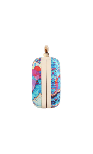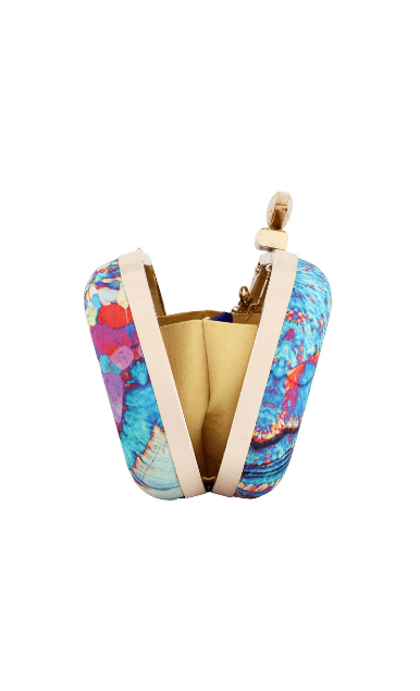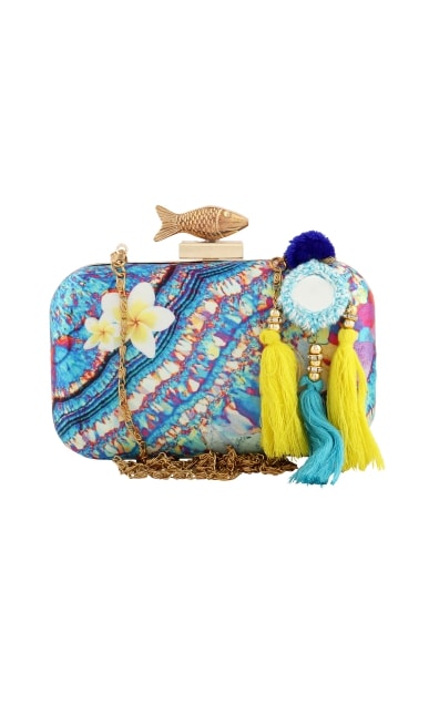 Trippy Art clutch is a multi coloured abstract printed box clutch. It has a mirror pom pom for enhancement. It comes with a clasp and a long chain handle.These stylish clutches are from Puneet Gupta {Fine crafted goods} a designer label with its presence in Australia, UAE & USA.