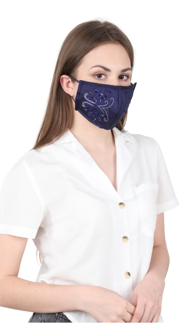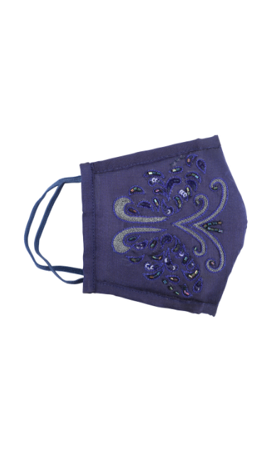 Hand embroidered with love by master Karigars to add style to your party or everyday look. The design is inspired by botanical floral branches from vintage indian royal tapestries. This stylish reusable mask is constructed with 3 layers of germ-resistant filters that provide protection from over 90% germs and microbes. The outer layer is made in dupion silk for a rich and lustrous look.