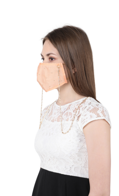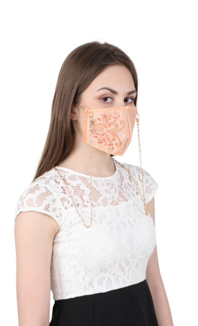 The outer layer is made in dupion silk for a rich and lustrous look. The mask comes with a unique neck chain feature for hasle free handling of the mask and keeping your mask safe from any contact with any unhygenic surface and saves you from the hastle of folding it and keeping it in your purse evertime you remove it or keep your hand occupied as you party.