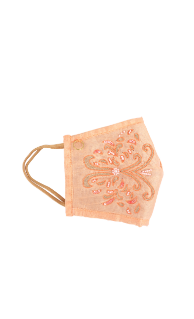 Hand embroidered with love by master Karigars to add style to your party or everyday look. The design is inspired by botanical floral branches from vintage indian royal garden miniatures. This stylish reusable mask is constructed with 3 layers of germ-resistant filters that provide protection from over 90% germs and microbes.