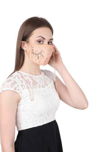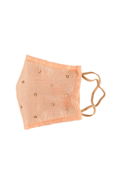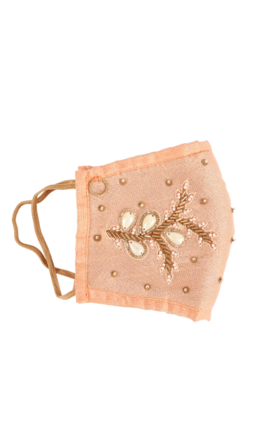 Inspired by botanical floral branches from vintage Indian royal garden miniatures, this peach mask is hand embroidered with love by master Karigars.