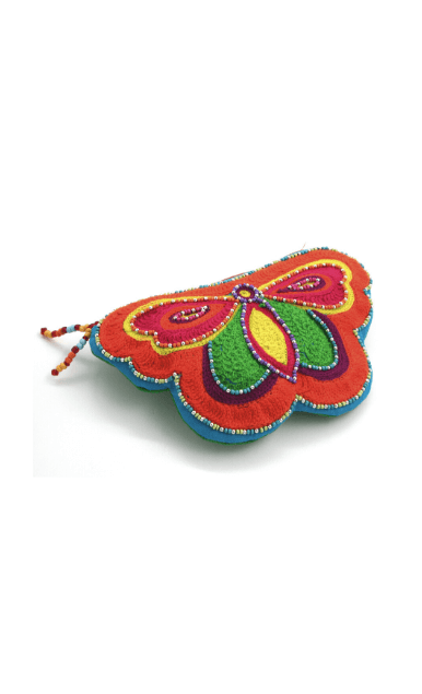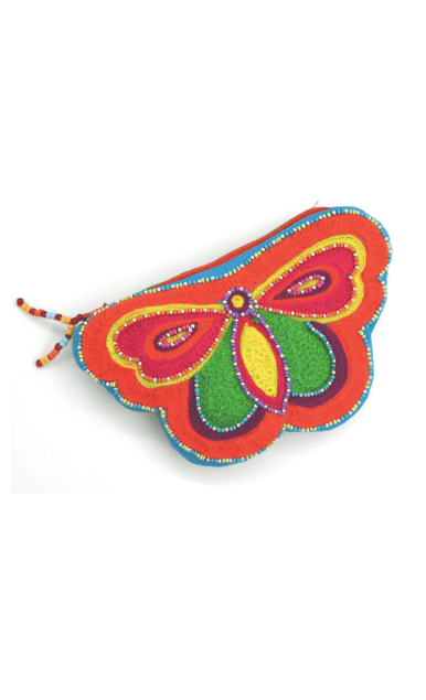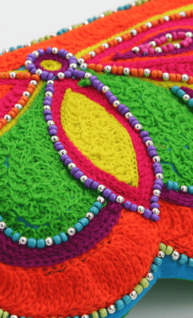 Popping colours of Vivid Morpho Butterfly pouch sketches the butterfly design in a whole way. Different beads joined together to give a perfect outline. Two beaded strips of zipper add versatility usage anytime. Store your phone, cash and cardholders in this fun-filled multi-utility pouch. It’s an ideal pouch for those events when hanging out with friends as in evening style bag.