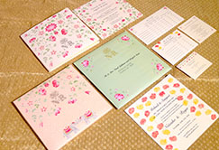 Subtle tones and hand painted imagery define the mood for this wedding invitation. Collaborating with an American Designer, the team bought the card to live with hand painted lotus spread all over the invite.